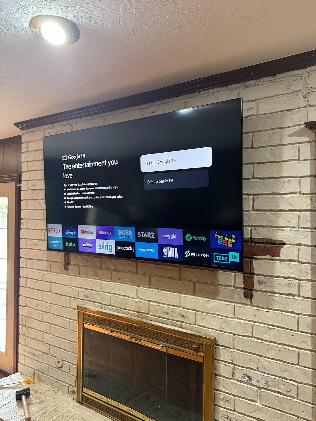 Provided a tilt mount and helped connect streaming devices 📺⚡
